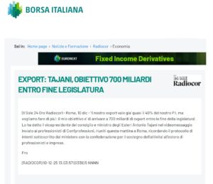 Vai al documentoExport: Tajani, obiettivo 700 miliardi entro fine legislatura